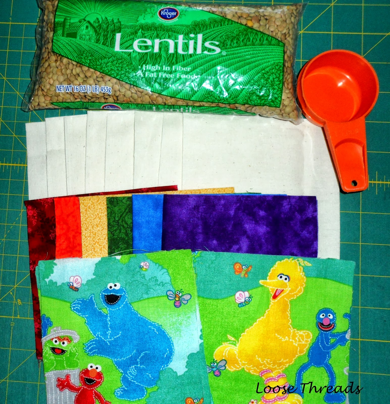 I had to go out and buy the muslin, and while I was there I saw the Sesame Street fabric and couldn't resist buying just a bit of that, too.